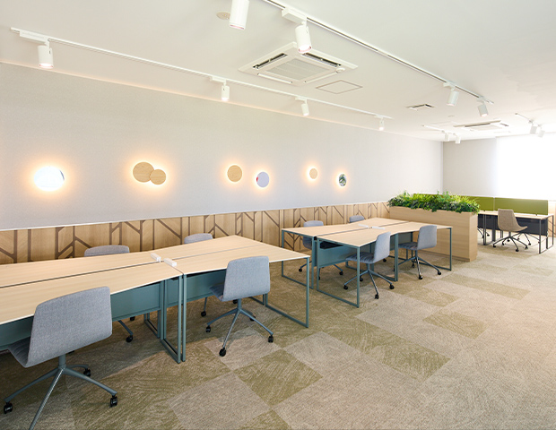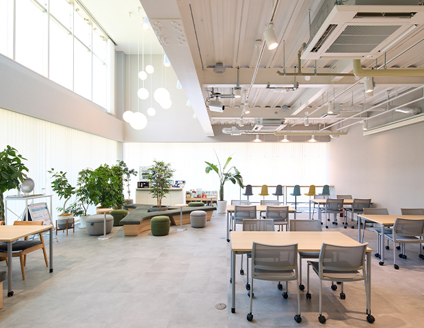 作業や打合せだけでなく、レイアウト変更によりピッチ等のイベントも開催できるオープンエリアです。