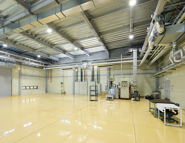実証設備を設置し、さまざまな検証が可能な屋内実証実験エリアです。電気、市水、エア、水素、都市ガス、窒素をお使いいただけます。